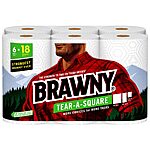 Amazon has 6-Count Triple Rolls Brawny Tear-A-Square 2-Ply Paper Towels for $19.49 - $4.87 when you clip the 25% coupon on the product page - $0.97 when you checkout via Subscribe & Save = $13.65. Shipping is free w/ Prime or on $25+ orders.