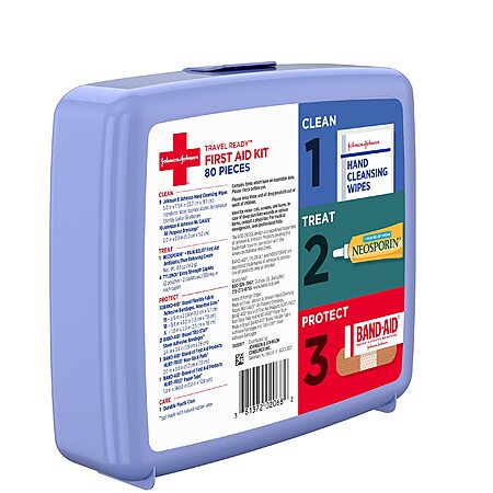 80-Piece Johnson & Johnson Travel Ready Portable Emergency First Aid Kit on sale for