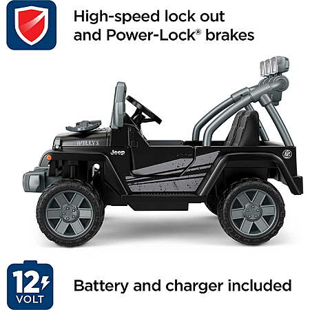 Power Wheels Jeep Wrangler Willys 12V Battery-Powered Ride-On Vehicle (Black)