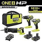 RYOBI ONE+ HP 18V Brushless Cordless 3-Tool Combo Kit with (2) 1.5 Ah Batteries, Charger, and Bag $149 + Free Shipping