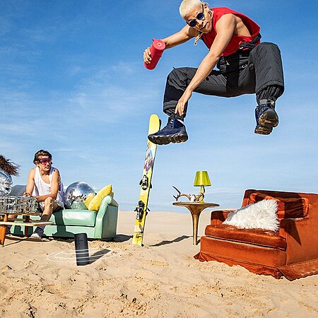 • MEGABOOM EXC is waterproof, dustproof and drop proof. Ready to rock any adventure from snowboarding in the mountains to breakdancing into the pool. 25 rigorous durability tests were conducted, including thousands of button pushes, tumbles and multiple drop tests and more. Wrapped in two-tone high-performance fabric.