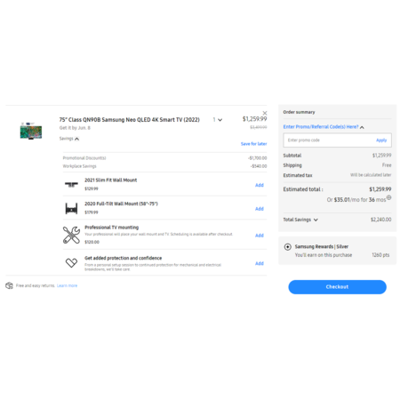 I just chatted and asked if there were any additional promotions. They offered free mount installation and the samsung care.