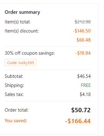 There is a new user coupon LUCKY365 that takes 30% off or up to $30.