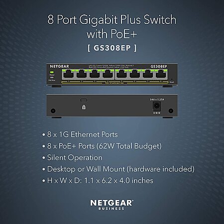 Netgear 8-Port PoE Gigabit Ethernet Plus Switch $59.99 + Free Shipping