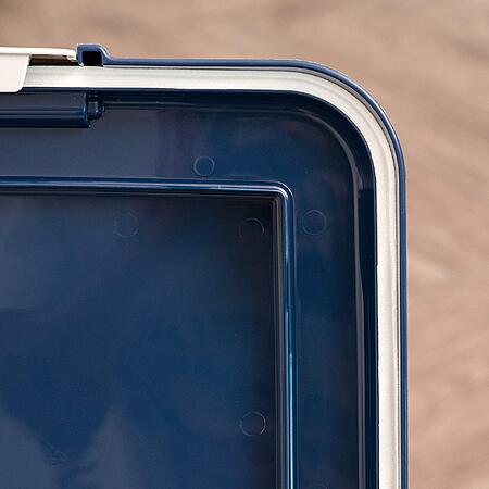 IRIS USA 50 Lbs / 69 Qt WeatherPro Airtight BPA-Free Pet Food Storage Container with Attachable Casters (Clear/Navy, 105885) for $18.49 >