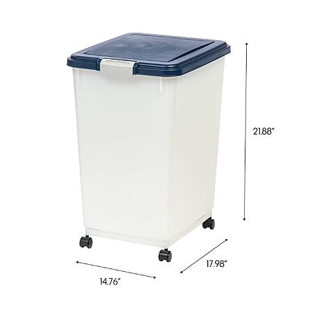 IRIS USA 50 Lbs / 69 Qt WeatherPro Airtight BPA-Free Pet Food Storage Container with Attachable Casters (Navy, 301087) for