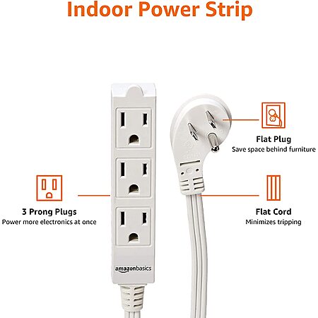 2-Pack Amazon Basics Indoor 6' Extension Cord 3-Outlet Power Strip w/ Flat Plug