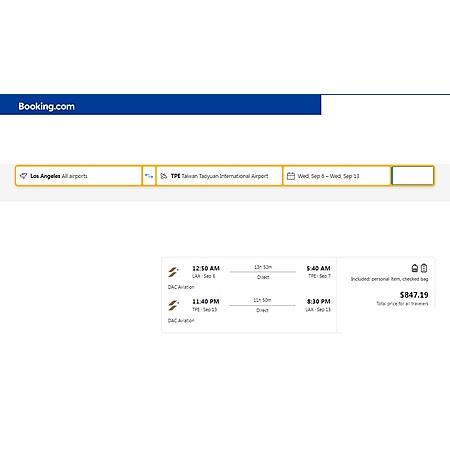 Roundtrip Nonstop Flight: Los Angeles (LAX) to Taipei, Taiwan (TPE)