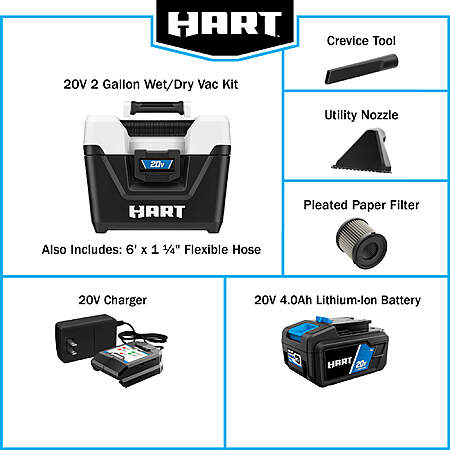 HART 20V Cordless 2-Gallon Wet/Dry Vac (Tool Only)