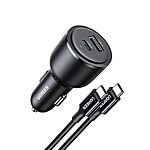 63W USB C Car Charger Adapter, UGREEN PPS 45W Super Fast Charging Type C Car Charger with 3.3FT 5A Cable, Dual USB Car Charger $17.99