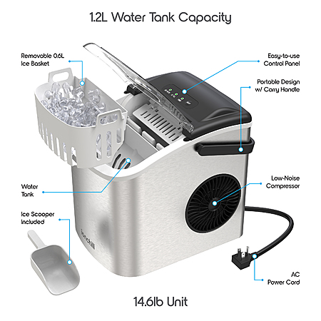 Ionchill Quick Cube Portable Countertop Bullet Ice Maker Machine (26-lbs per day)