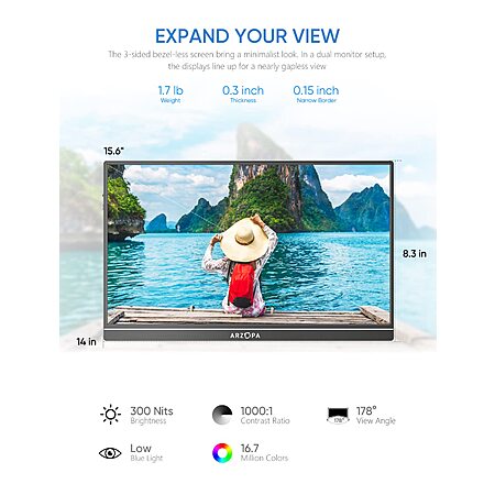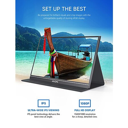 15.6" ARZOPA 1920x1080 60hz Portable IPS External Monitor w/ Cover (A1 GAMUT) on sale for $79.99 >