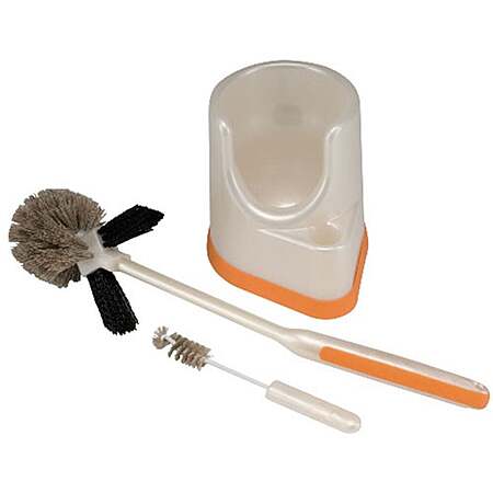 • This Toilet Brush comes with 3 brush sections that clean the bowl as well as the hard-to-reach area under the rim. This also includes an additional crevice brush to clean hard-to-clean spots and it stores in separate spot on the caddy.