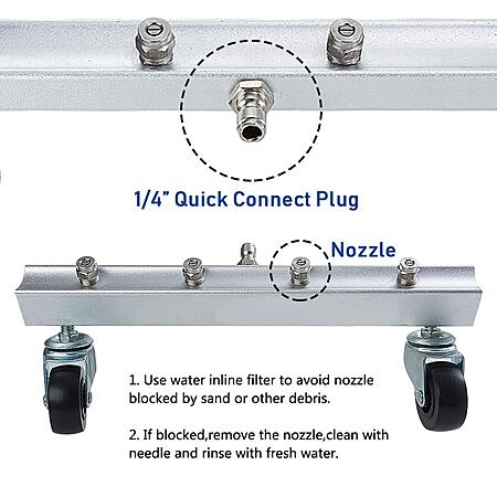 - 13 Inch undercar cleaner for pressure washer with 4 nozzles and 2 casters. Suitable for both hot and cold water.