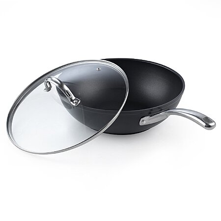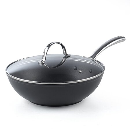 11" Cooks Standard Flat Bottom w/ Lid Hard Anodized Non-Stick Wok Stir Fry Pan (Black) $29.60 + Free Shipping