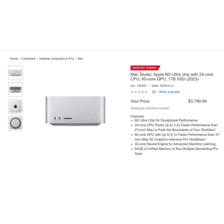 Mac Studio: Apple M2 Ultra chip with 24‑core CPU, 60‑core GPU, 1TB SSD @ Costco $3799.99