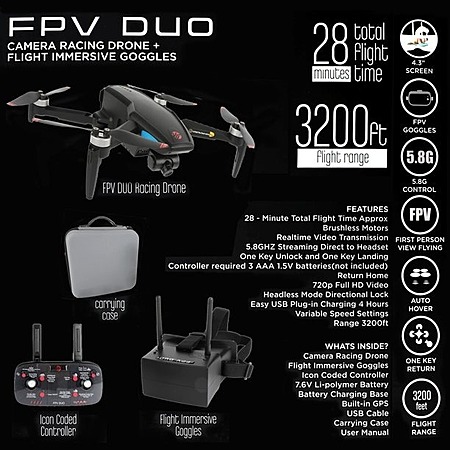Vivitar VTI FPV Duo Camera Racing Drone w/ Flight Immersive Goggles & Remote (Factory Reconditioned) $100 + Free Shipping
