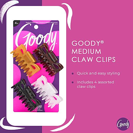 Amazon[amazon.com] has 4-Count Goody Classics Medium Claw Clips for $2.49 - 5% off when you checkout via subscribe & save = $2.37. Shipping is free w/ Amazon Prime or on $25+.