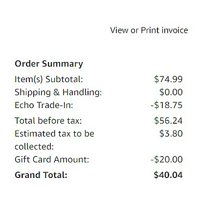 This is actually a really good deal, because you get $20 trade in on the echo show, plus you get a discount on the new device purchase. Both of those trigger in this deal.