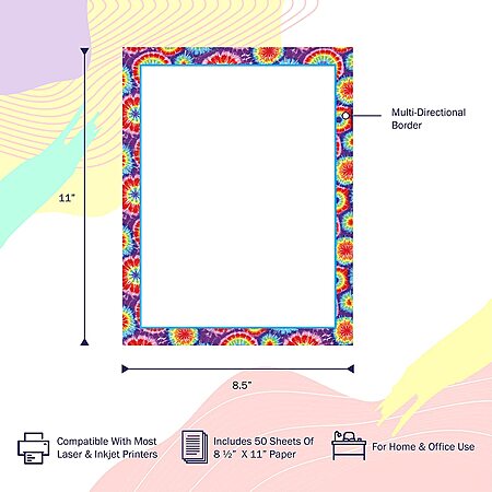 50 Sheets Barker Creek Designer/Decorative Computer/Printer Paper, Tie-Dye, 8.5” x 11” $3.20 + Free Ship w/Prime