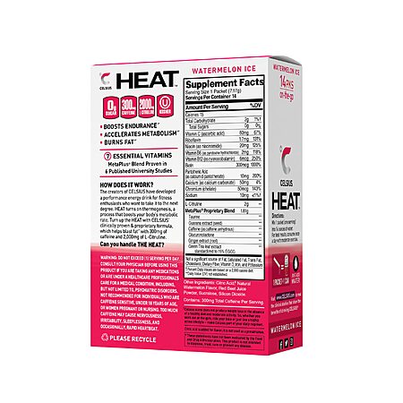 Amazon[amazon.com] has 14-Count Celcius Heat On-the-Go Performance Energy Powder Stick Packets (Watermelon Ice) for $7.59 ($0.54 each) when you checkout via Subscribe & Save. Shipping is free w/ Amazon Prime or on $25+