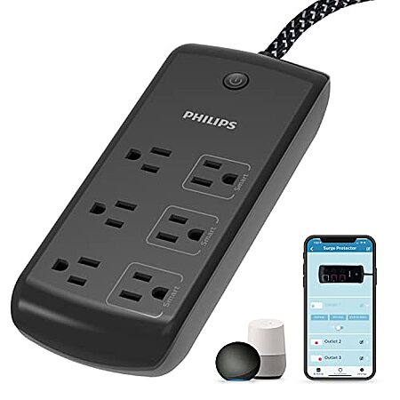 Model: Philips 6-Outlet Wi-Fi Surge Protector, 8 Ft Braided Cord, Smart Surge, Individual Control, Compatible with Amazon Alexa and Google Assistant, No Hub Required, Black, SPP9068BF/37