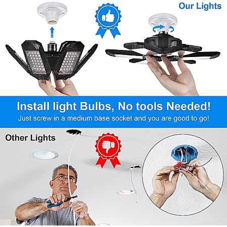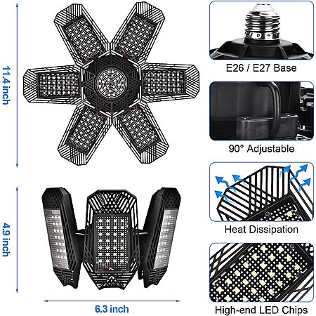 Features:- This LED garage light supports E26/E27 sockets (without sockets), screw-in installation no tools, no wiring