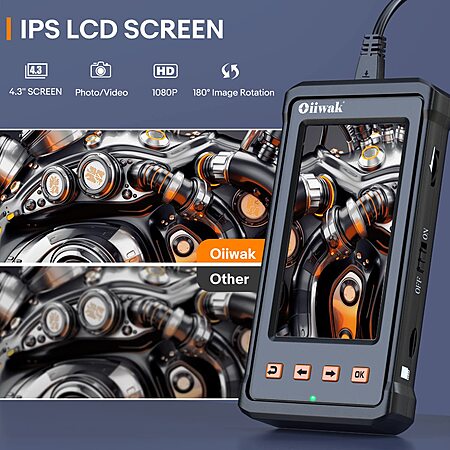 Oiiwak Dual-Lens Endoscope Camera: 4.3'' IPS Screen & 11.5' Cable + 8GB TF Card on sale for $69.99 - 10% when you 'clip' the coupon on the product page - $28 when you apply promo code