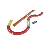the turns are tight on this one, cars have to be going pretty slow not to fly off. They can carry a lot more speed if you bank the turns by placing something under them. There are wider turns for sale on Amazon, but they're 3x the price and don't work that much better.