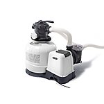 SAND FILTER PUMP: The 14-inch Intex Krystal Clear sand filter pump with Hydro Aeration Technology improves circulation and filtration and improves water clarity; The pump runs on 110-120V and weighs 45.87 pounds.