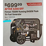 Firman 7500W Running / 9400W Peak Tri Fuel Generator on sale for