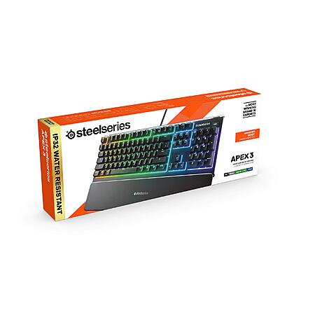 SteelSeries Apex 3 Whisper Quiet 10-Zone RGB Backlit Wired Gaming Keyboard on sale for