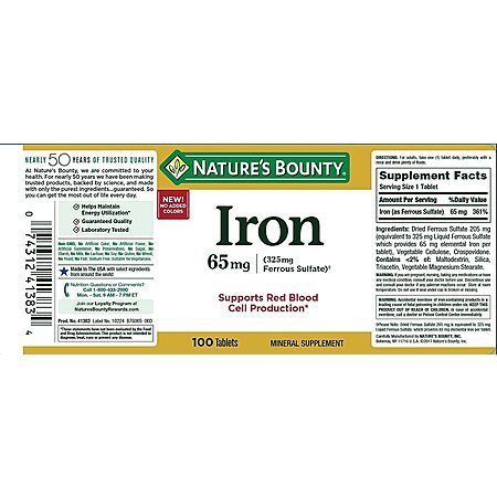 100-Ct Nature's Bounty Iron Supplements (65mg) 2 for $5.20 w/ S&S + Free Shipping w/ Prime or on $25+