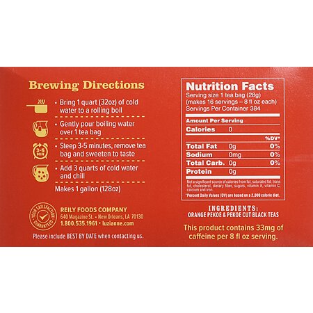 Model: Luzianne Iced Tea Bags, Gallon Size, Unsweetened, 24 Count Box, Specially Blended For Iced Tea, Clear & Refreshing Home Brewed Southern Iced Tea