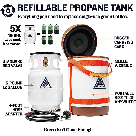 Ignik Gas Growler Deluxe 4.5L Refillable Propane Tank w/ Carry Case & Adapter Hose