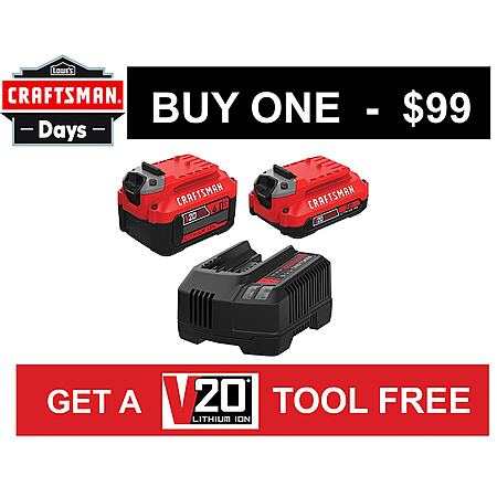 FREE TOOL!! CRAFTSMAN V20 20-Volt 2-Pack 4 Amp-Hour; 2 Amp-Hour Lithium-ion Power Tool Battery Charger Station (Charger Included) | CMCB204-CKVA $98