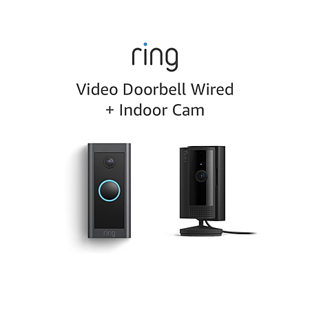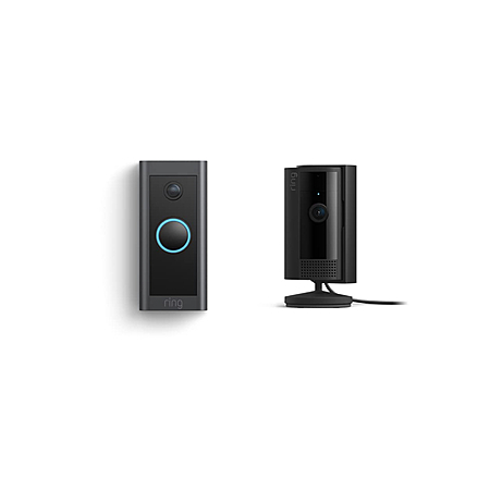 All-new Ring Indoor Cam, Black with Ring Video Doorbell Wired