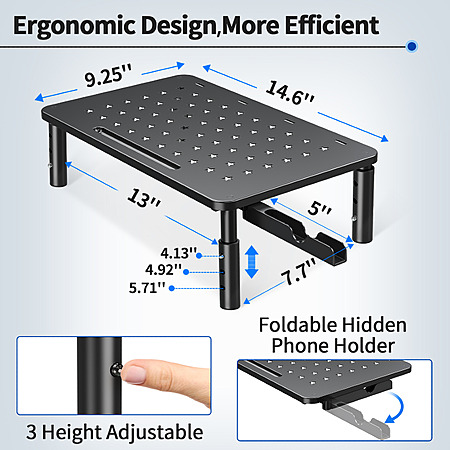 2-Pack Zimilar 3 Height Adjustable Metal Monitor Stand Riser with Retractable Phone Holder $16 + Free Shipping $15.99