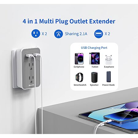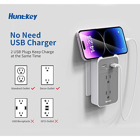 Huntkey 4-in-1 Multi Plug Outlet Extender w/ Phone Cradle $7 + Shipping is free w/ Prime or on $25+