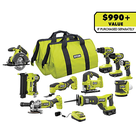 ONE+ 18V 10-Tool Combo Kit with (1) 1.5 Ah Battery and (2) 4.0 Ah Batteries and Charger free delivery - $429.00