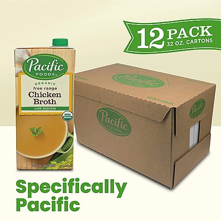 12-Pack 32-Oz Pacific Foods Organic Free Range Chicken Broth (Low Sodium) $19.64 w/s&s