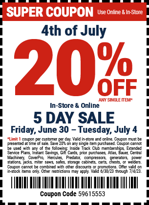 Harbor Freight Coupon: Online or In-Store Purchases: Any One Eligible Item