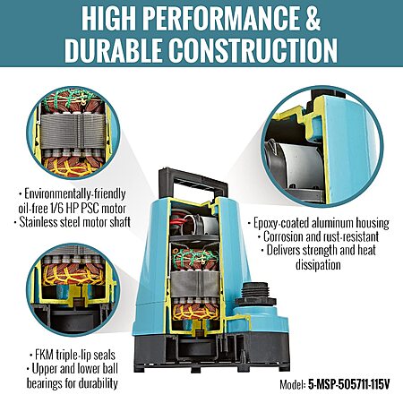 Model: Little Giant 5-MSP 115-Volt, 1/6 HP, 1500 GPH, Aluminum Manual Hydroponics Pump, 10-Ft. Cord, Blue, 505711
