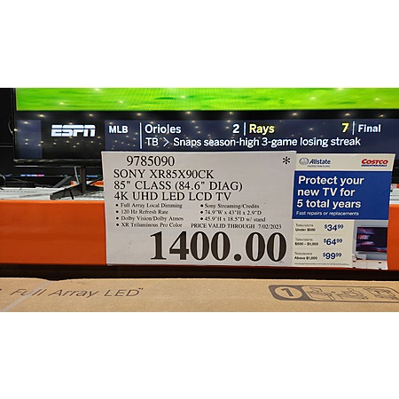 YMMV Sony 85" LED TV XR85X90CK $1400 at Costco B&M