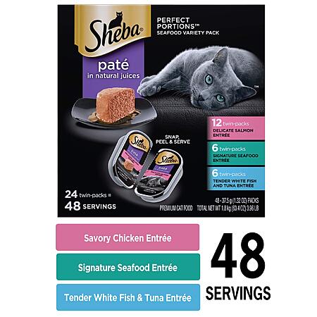 24-Count Sheba Perfect Portions Paté Adult Wet Cat Food Trays (48 Servings) on sale at 2 for $51.96 - $20 multibuy discount at checkout - $2.60 when you checkout via Subscribe & Save =