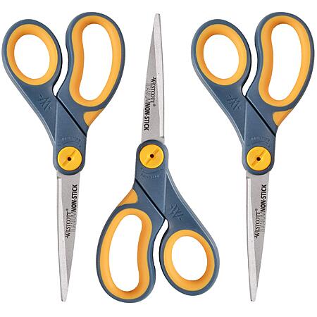 3-Pack 8" Westcott Titanium-Bonded Non-Stick Scissors (Gray/Yellow) $11.60 + Free Shipping w/ Prime or on $25+