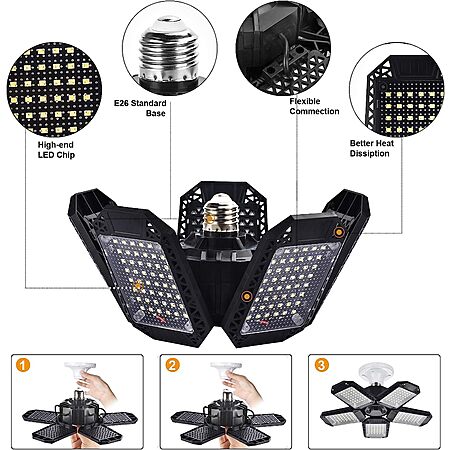 2-Pack 120W Mefflypee Deformable LED Garage Ceiling Lights (12000LM, E26/E27)