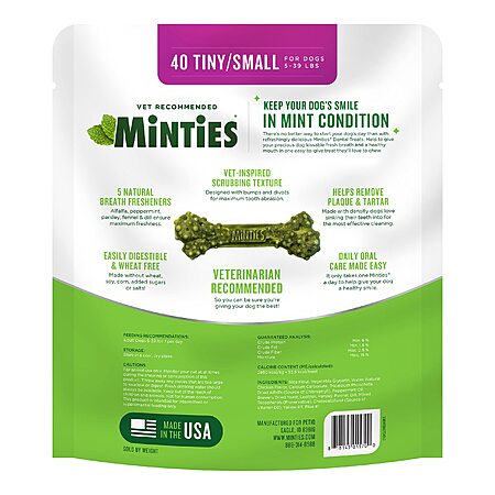 40-Count Minties VetIQ Dog Dental Bone Treats (Tiny/Small Dogs, under 40-lbs) $5.30 w/ S&S + Free Shipping w/ Prime or on $25+