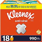 18-Pack 55-Count Kleenex Anti-Viral 3-Ply Facial Tissues