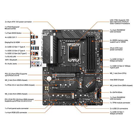 - MSI PRO Z690-A WIFI DDR5 LGA 1700 Intel Z690 SATA 6Gb/s ATX Intel Motherboard